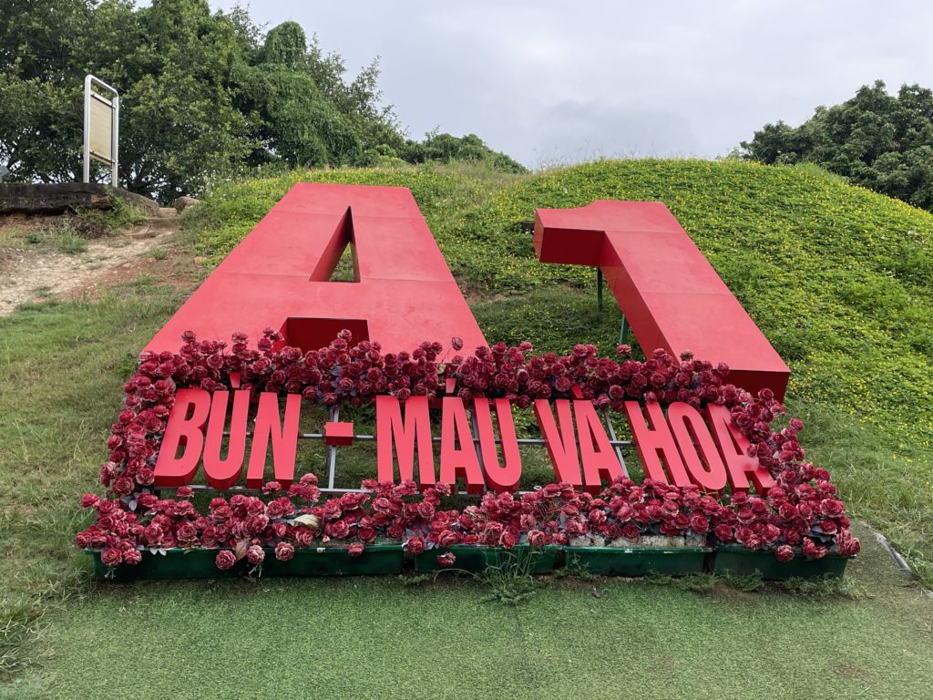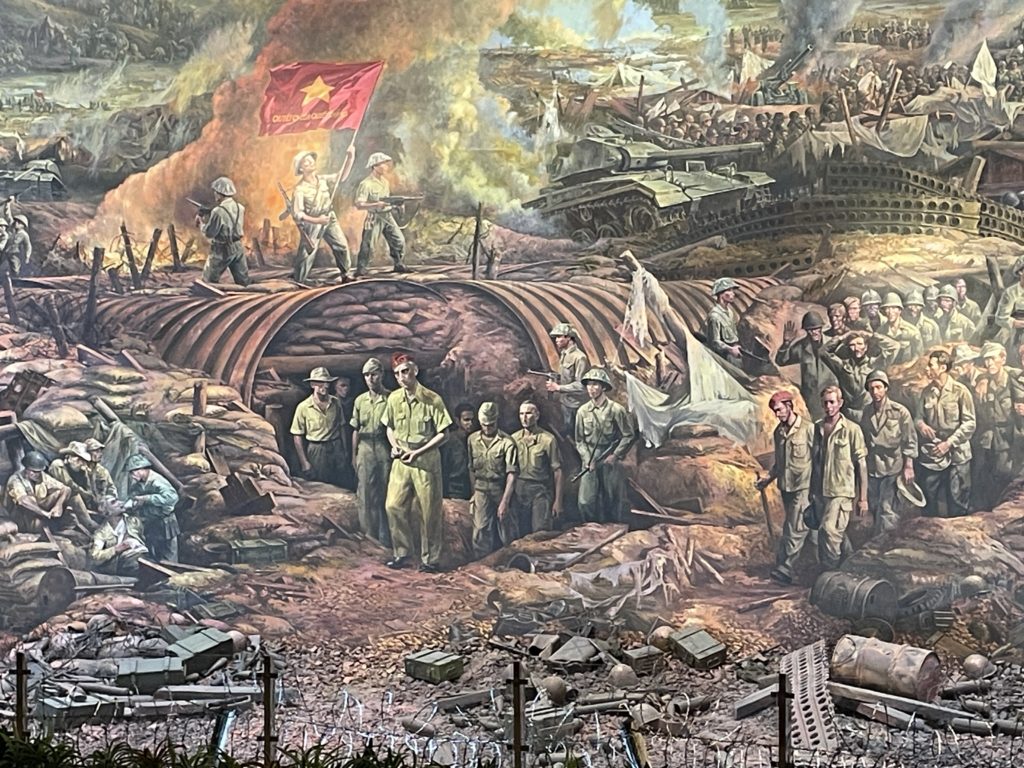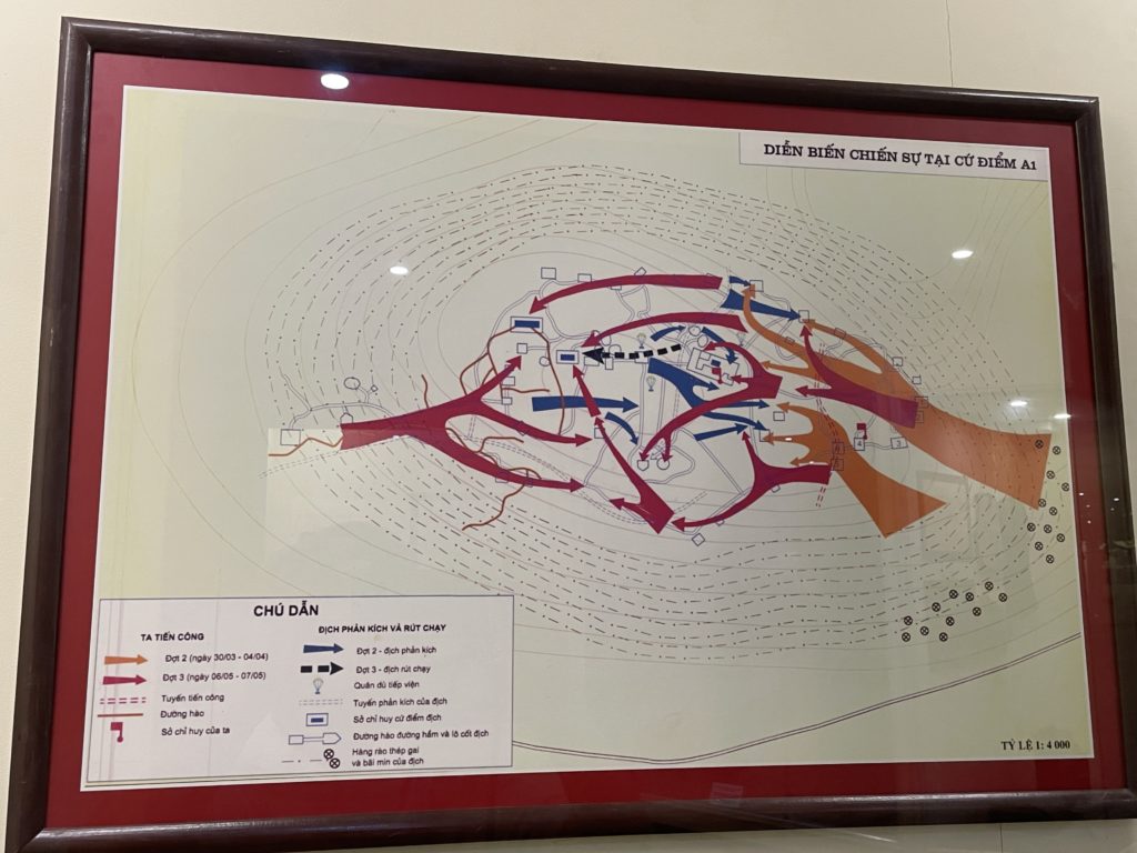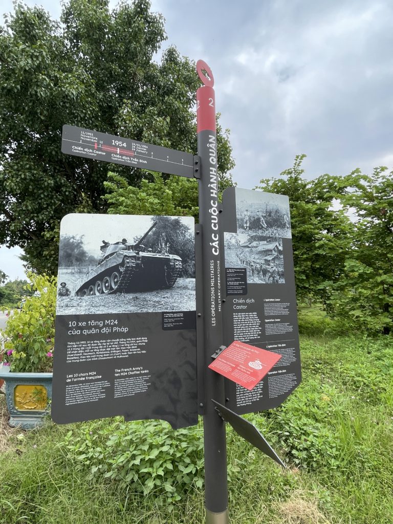かつてここは、フランス軍の総司令部が置かれていた場所です。当時のフランス軍司令官がド・カストリーという人だったので、「 ド・カストリーの指令部跡」と呼ばれています。彼は2か月にわたる攻防の末、ベトナム軍の捕虜に。