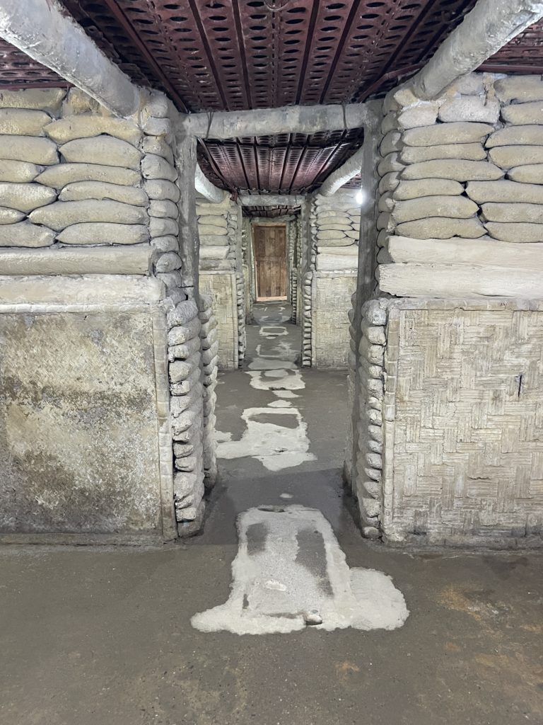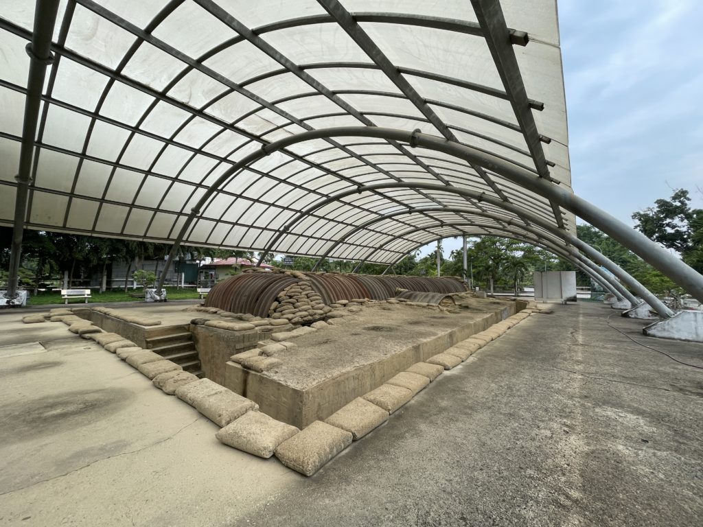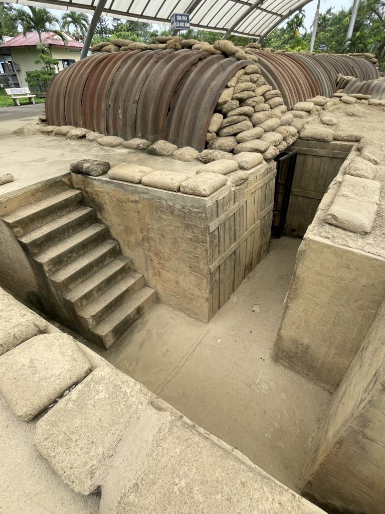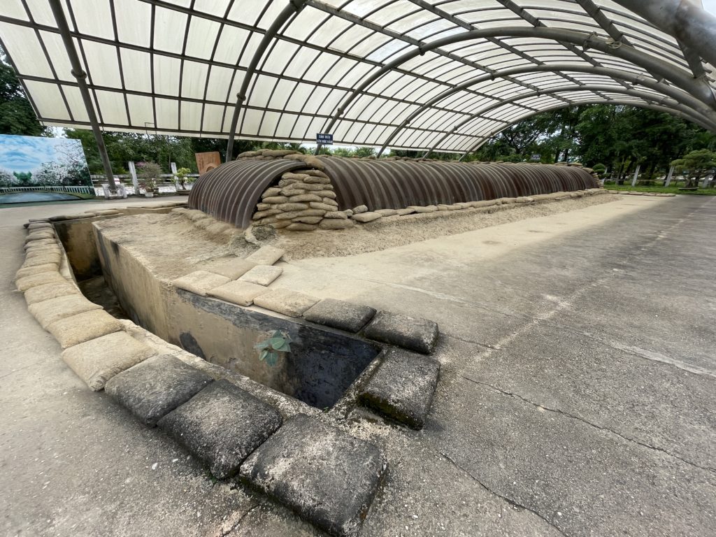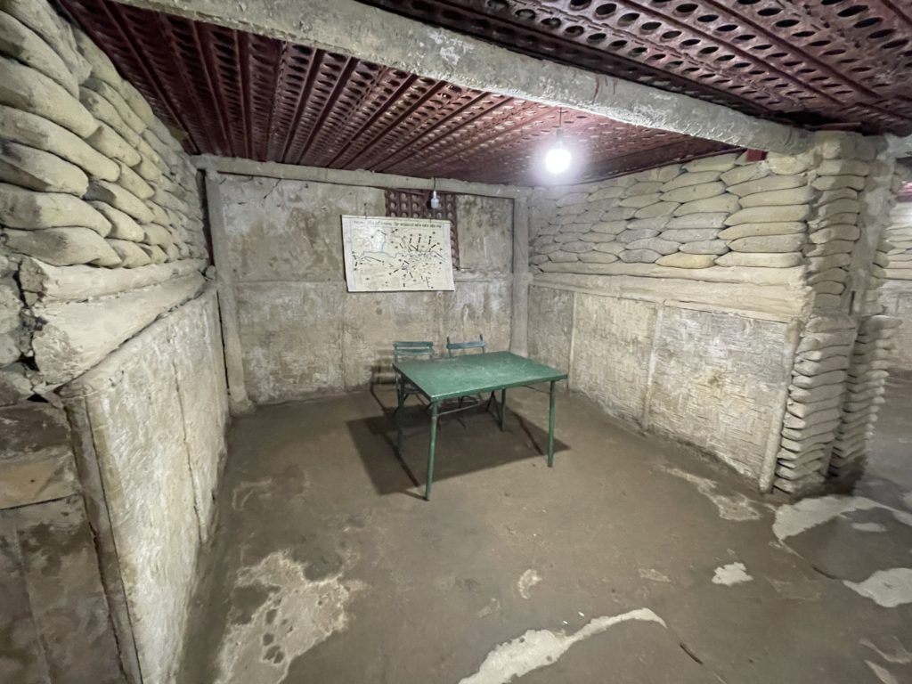 上を覆う屋根は、最近になって設けられたようです。司令部跡に近づくと、そばのお店からおばさんが出てきて、入場料の徴収をします。2万ドン・約120円(訪問当時)でした。