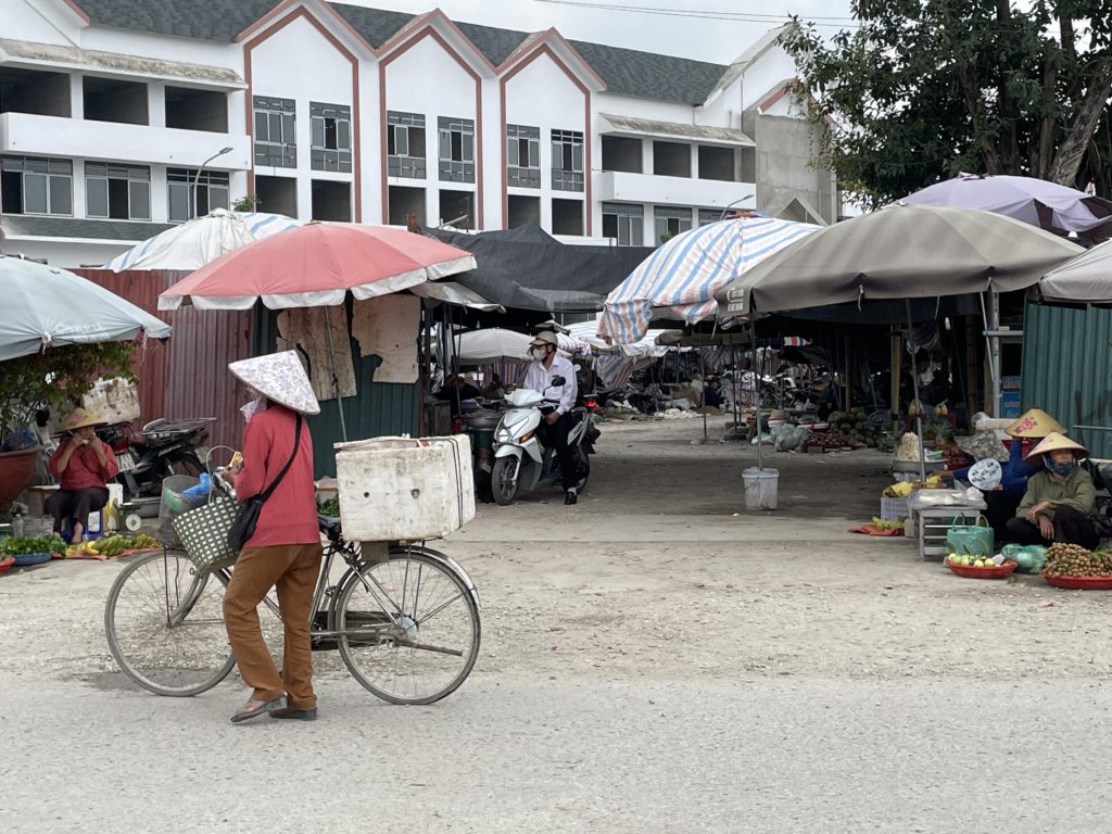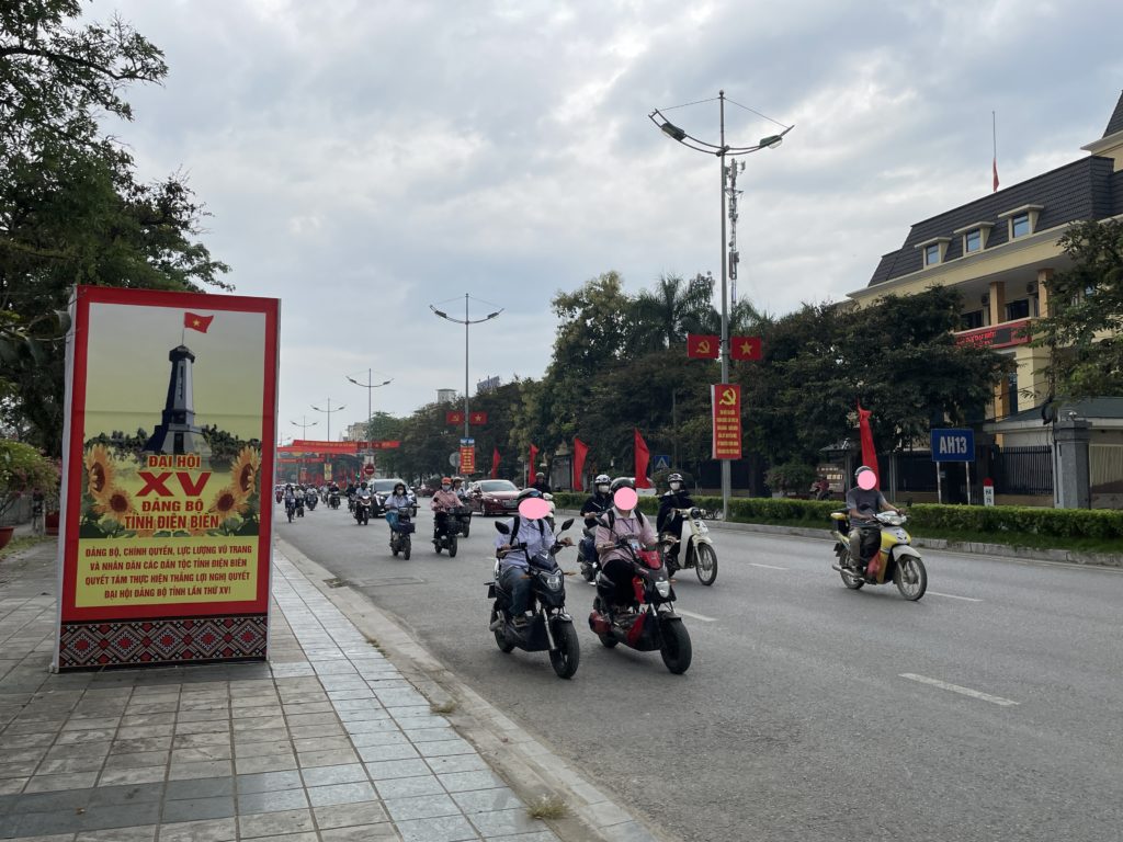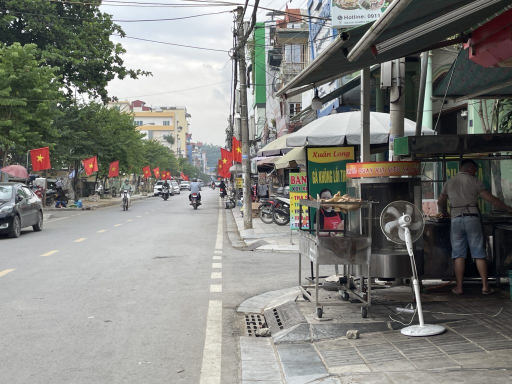食後ホームステイを出発。街歩きをしながら、ベトナムとフランスの戦いの跡を巡ります。広い歩道はありますが、通りを歩いている人はほとんどいません。また車やバイクがハノイより少ないため、道を歩いていて命の危険を感じることはありませんでした。