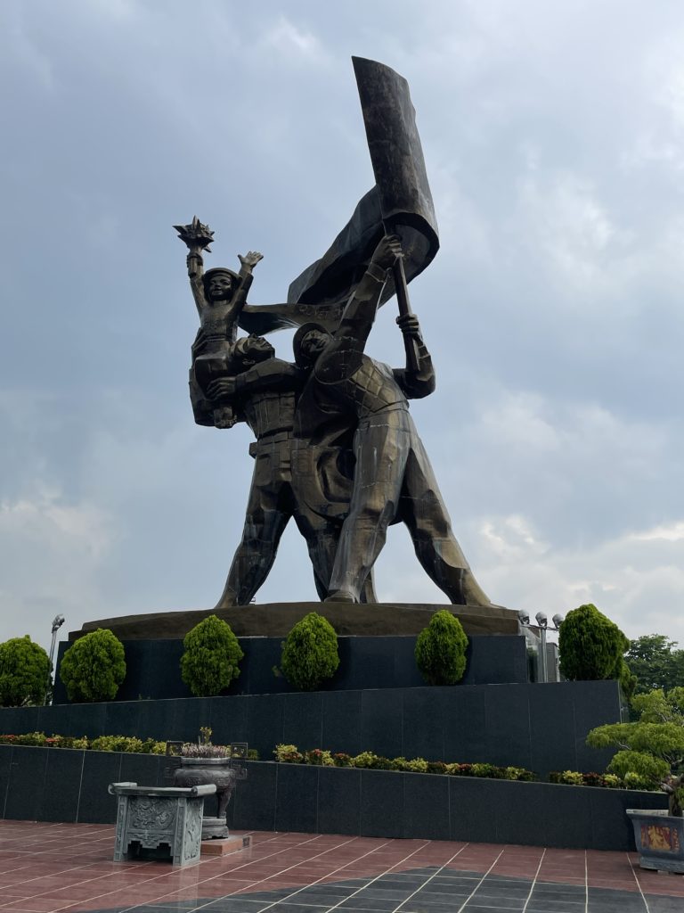 なだらかな坂を登った先にあるのが「ディエンビエンフー戦勝記念碑」です。戦勝50周年を記念して、2004年に建てられました。