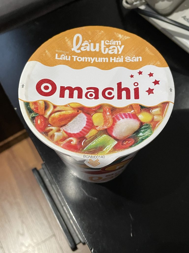 夕食想定の2種類のカップ麺(1個1万1千ドン・約65円)と