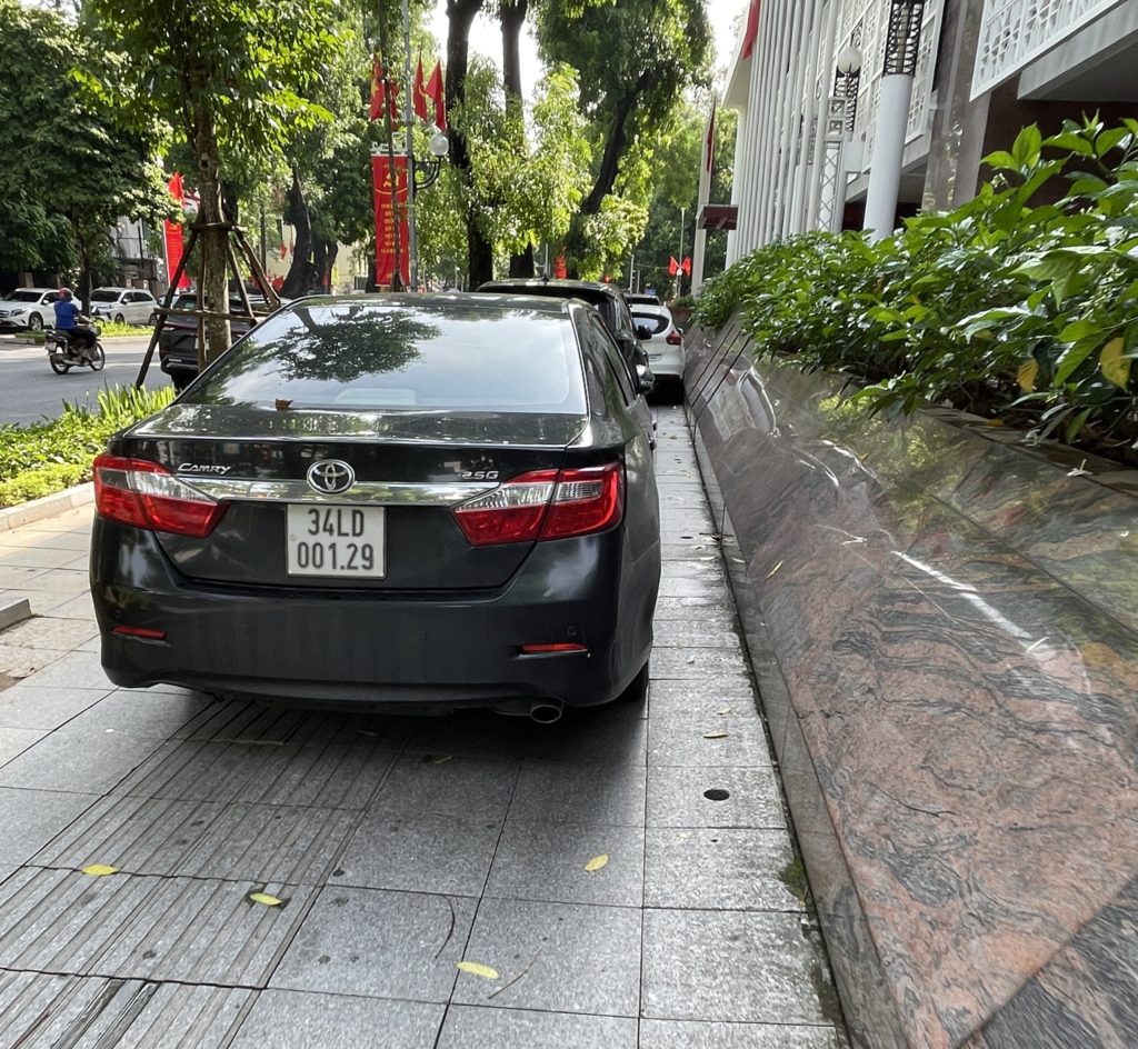 戻る途中、今度は歩道を堂々と駐車スペースにしている公共施設がありました。先ほどの博物館の件といい、ハノイの印象は地に落ちた感じでした。