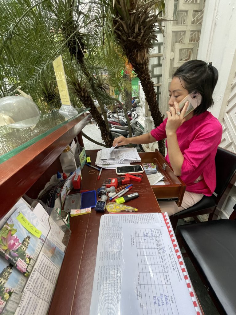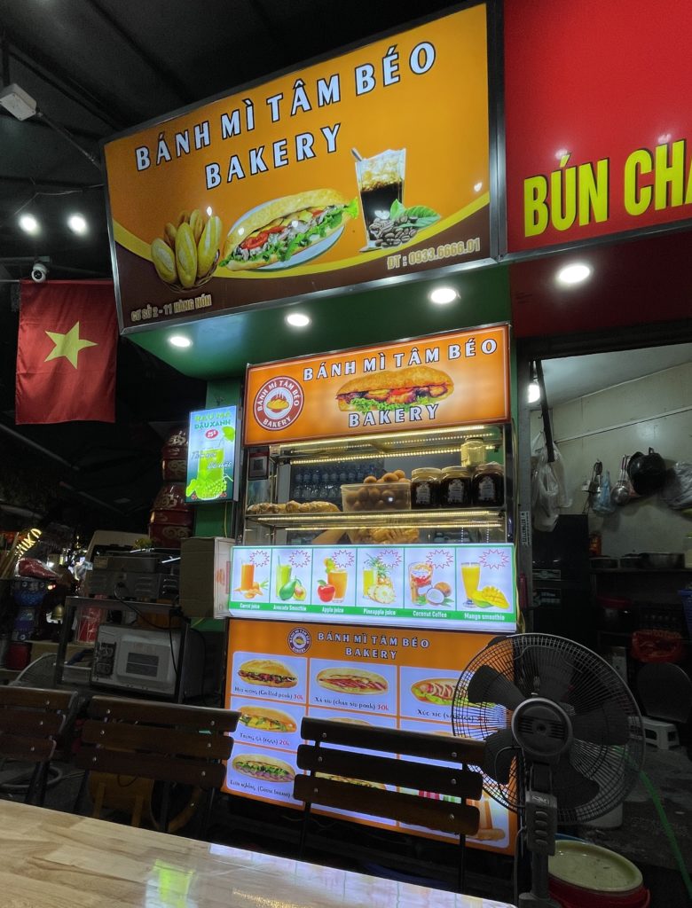 人形劇の帰り道、昼店主のいなかったバインミー店に再び行ってみました。今回も店主が見当たらず諦めようとしたところに、大量のフランスパンを抱えた女性が登場。その人が店主でした。