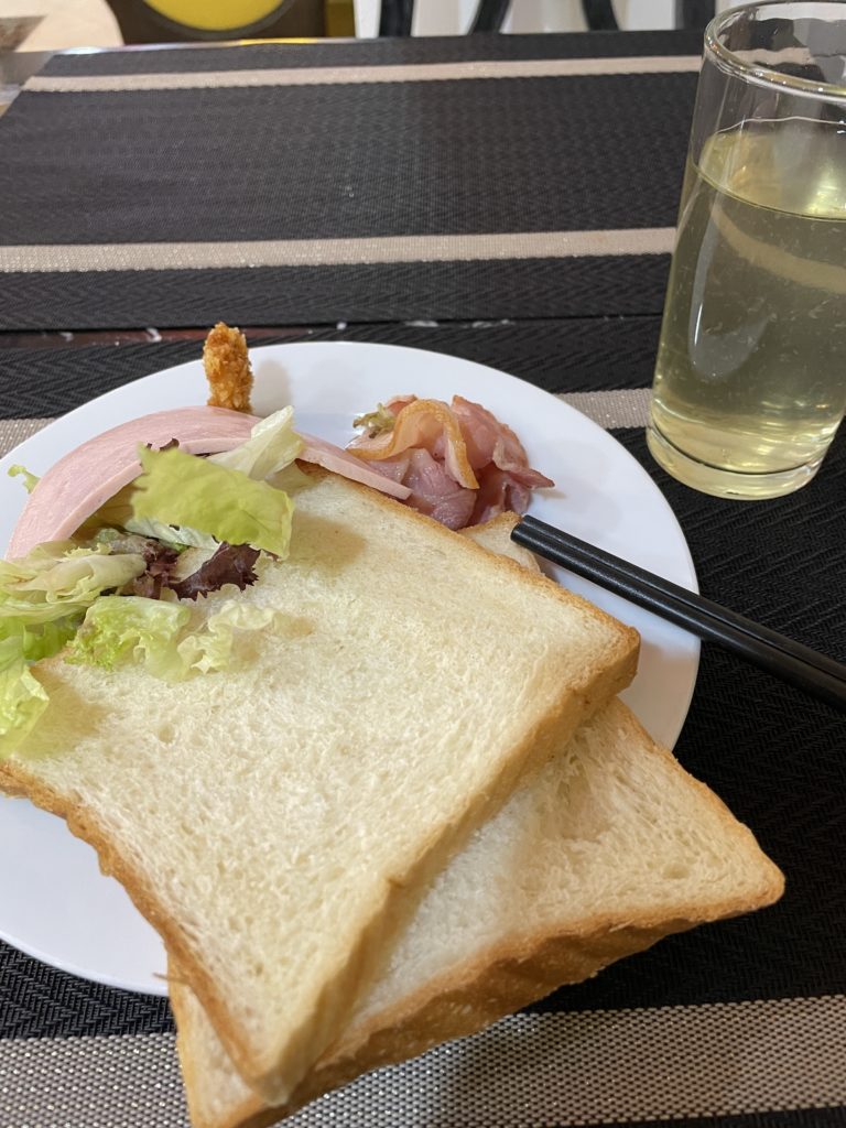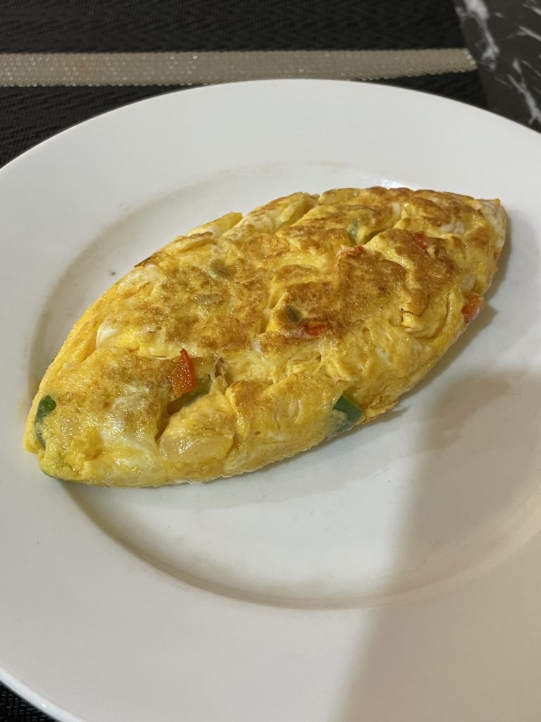 起きてみると、ありがたいことにかなり体調が回復していました。朝食では、ライブキッチンで野菜オムレツを注文してみました。