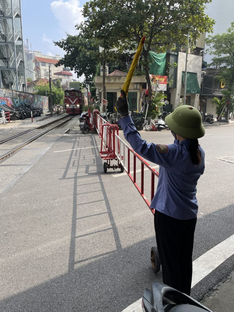 そのうち遮断機を手動でガラガラと引き出し、道路を通行止めに。