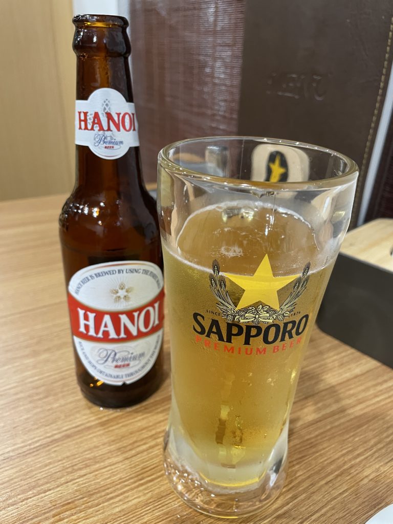 グラスがサッポロビールでした(でもビールはハノイビールです…)。
