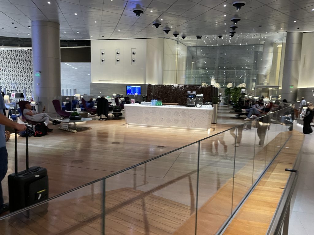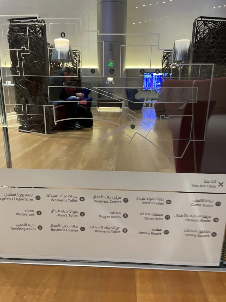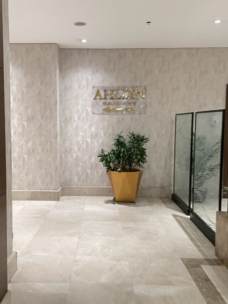 入ったのは「アル・ムルジャン・ビジネスラウンジ」 。受付から中に入ると、その広さに圧倒されました。いったいどこまで続くのか。