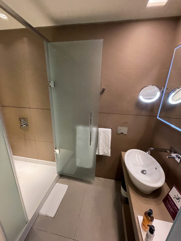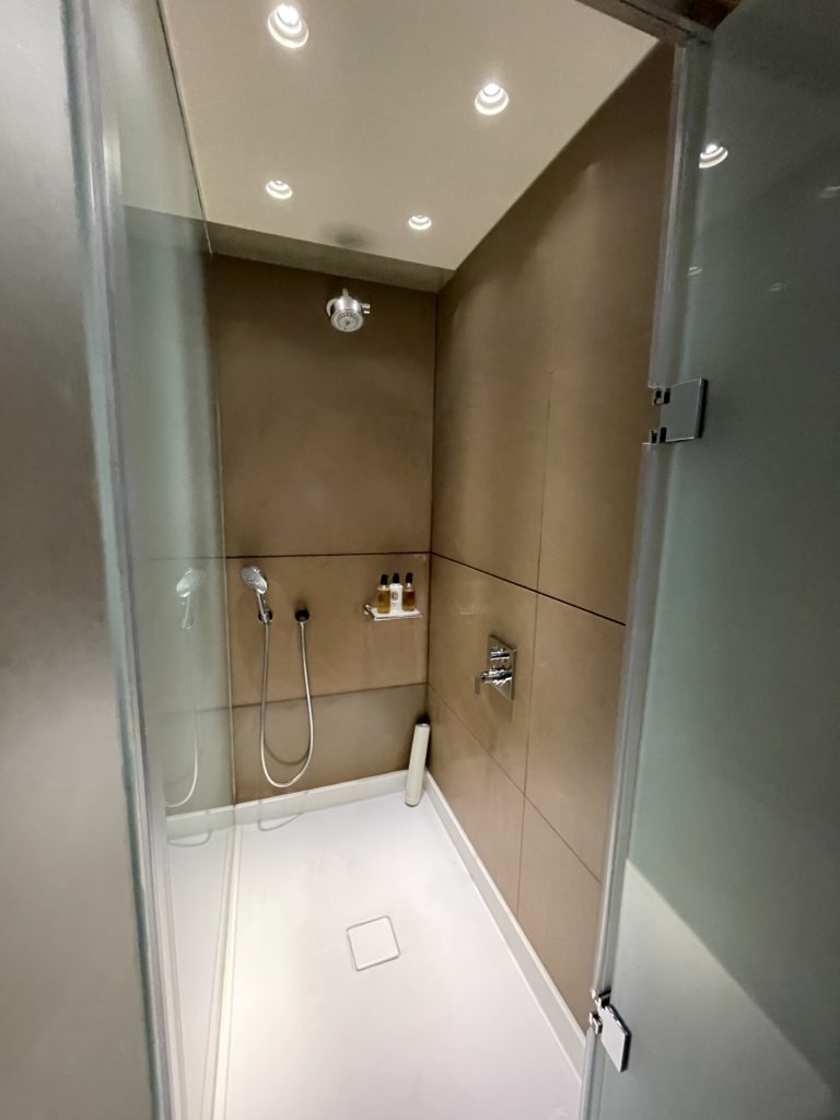ひとまずシャワーということで、入り口で場所を聞いたものの、広すぎてよくわからず、結局スタッフに案内してもらうことに。