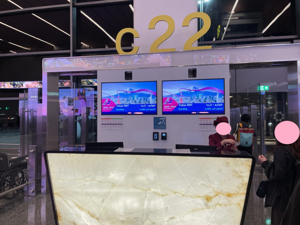 カイロからドーハまでは、B777-300ERで3時間ほど。実は当初A350-1000予定だったので、かなり期待していたのですが、直前になって機材が変更になり、ちょっとがっかり。ちなみに「ファーストクラスにアップグレードしました」というメールがきていて、扱いはファーストクラスらしかったのですが、ラウンジは上記な感じだし、あまりメリットはありませんでした。もしこれが逆方向なら、ドーハのファーストクラスラウンジに入れたのに…とちょっと思ったり。