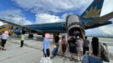 機内では、あちらこちらで撮影大会が…。新型機、やはり撮影したくなりますよね~。